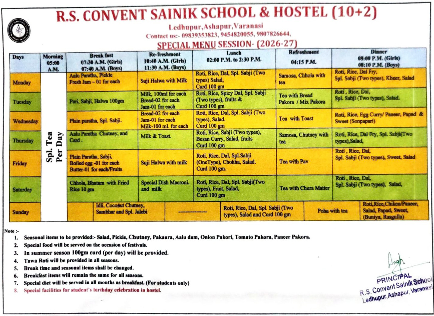 Hostel Special Menu (2026-27)